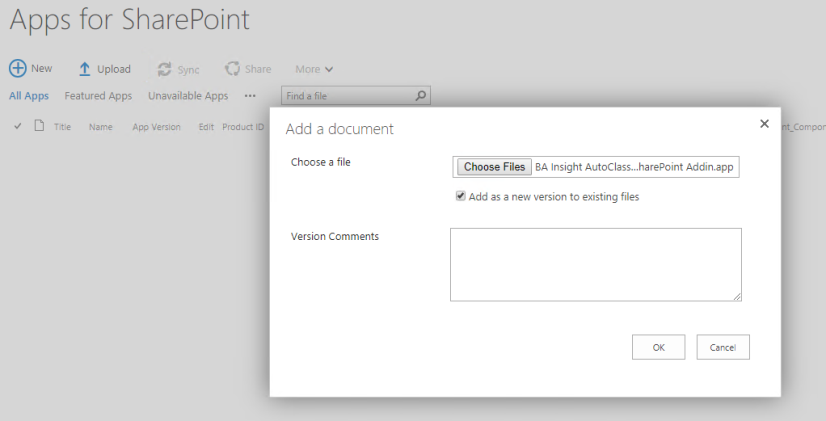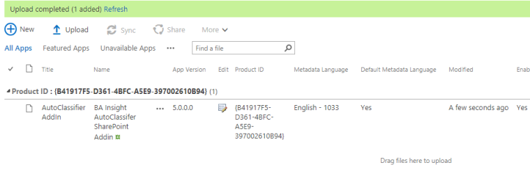 On initial deployment the App adds event receivers and initiates a synchronization between SharePoint and AutoClassifier.