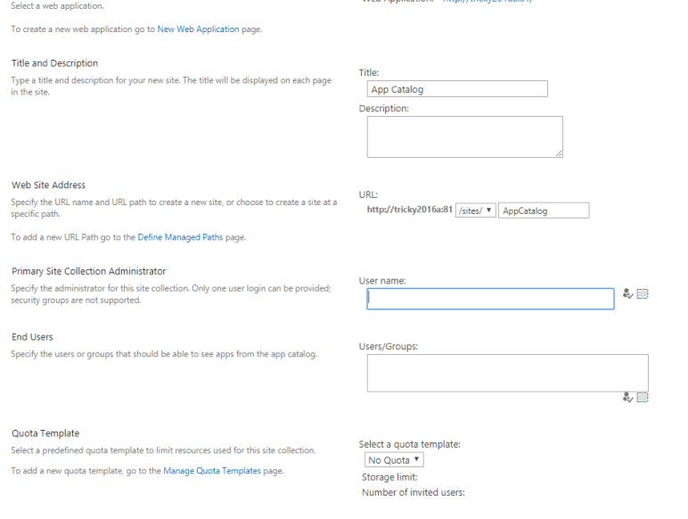 If your targeted Site Collection does not have an App Catalog, follow steps 1 through 5 below, otherwise skip to step 6.