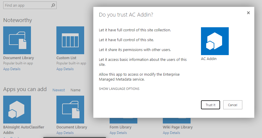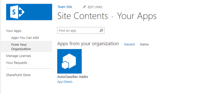 - Navigate to your Site Collection App Catalog