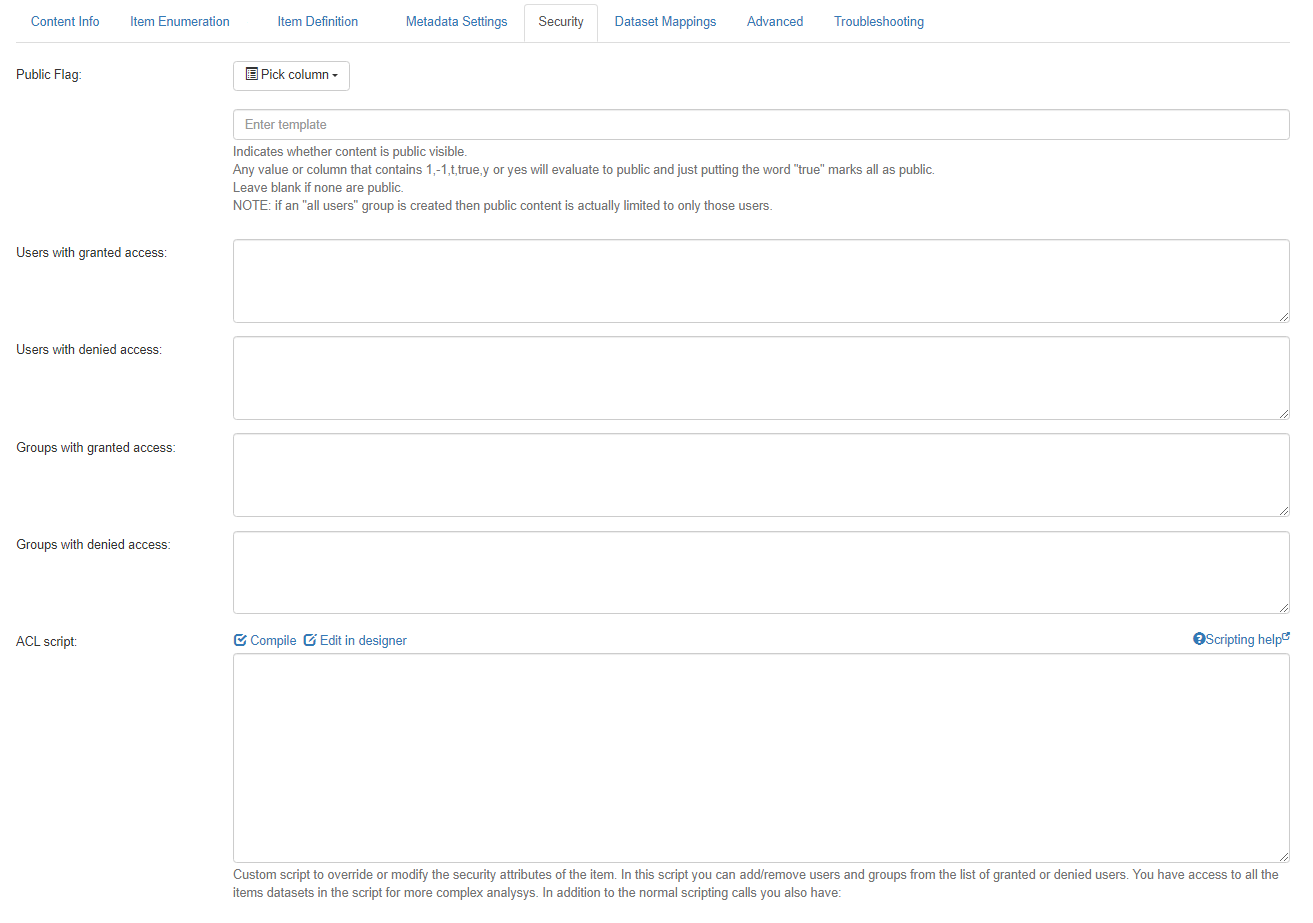 Use the Content Security form to configure how security is applied to your item.