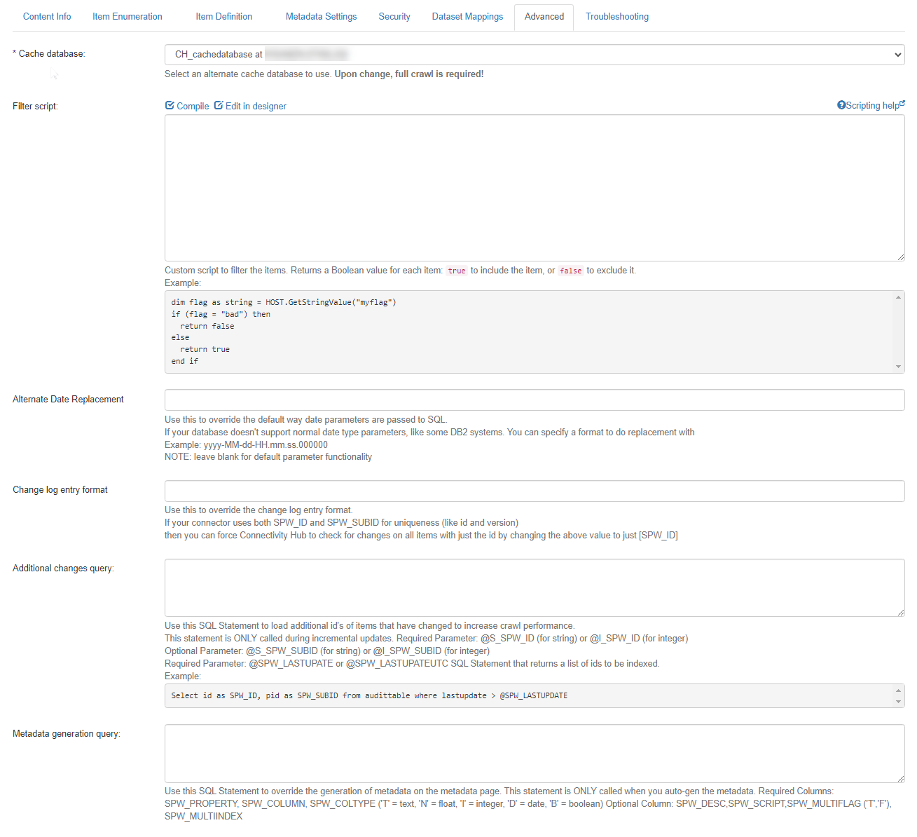 - Use this SQL Statement to load additional ID's of items that have changed to increase crawl performance.