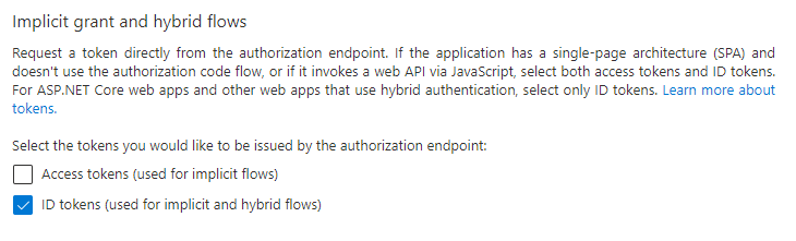 - Ensure that the ID tokens option is enabled.