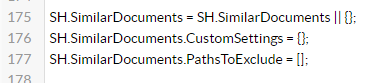 - Paste the copied settings inside section SH.SimilarDocuments.CustomSettings.