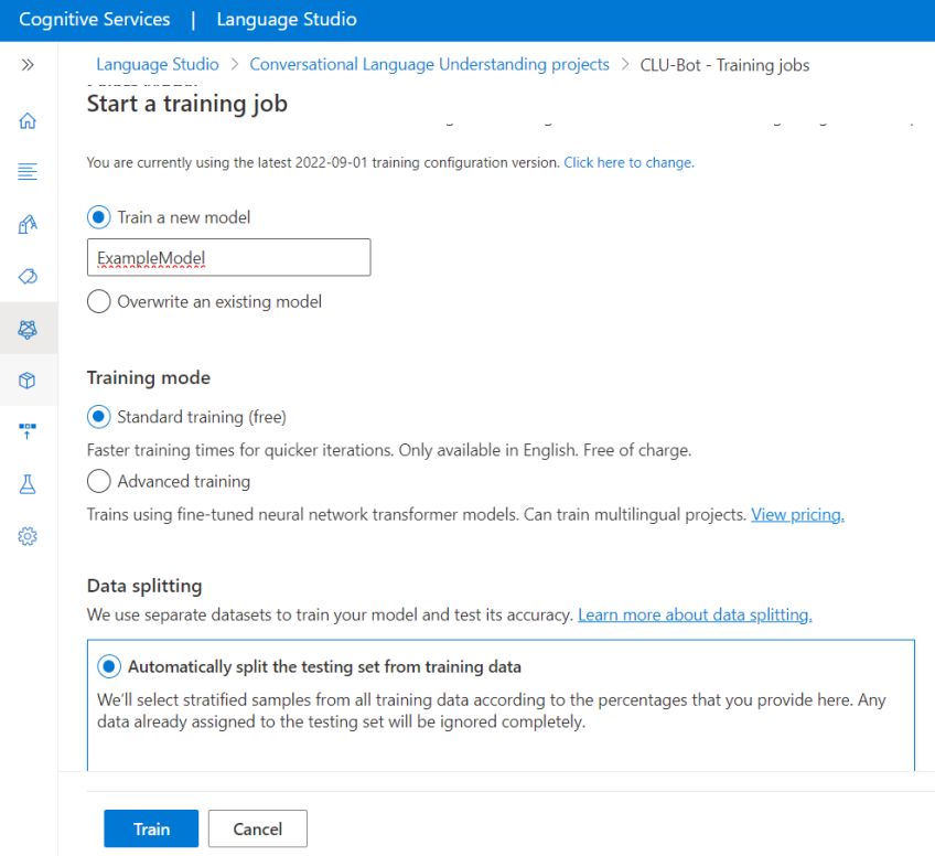 For each intent, enter examples of what a user might say/ask regarding that intent (called "utterances").