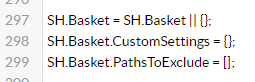 - You can change the Basket options by adding and editing the Basket code in your custom settings file.
