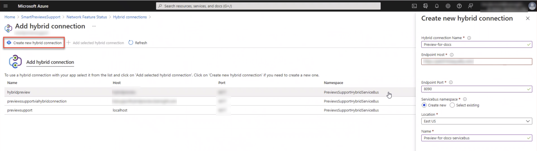 How to Configure an Azure Hybrid Connection between Smart Previews Azure Web App and the Hybrid Service