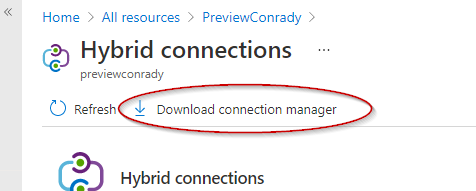 3. Download the connection manager from the Azure Portal UI to your Hybrid Server.