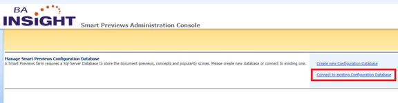 - Go to Smart Previews Web Admin Console site from IIS Manager and select Connect to existing Configuration Database.