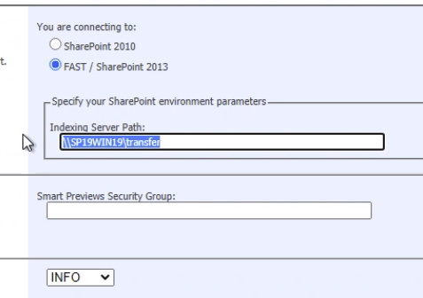 Enter the information that is required to establish the connection with the SharePoint 2013/2016/19 component: