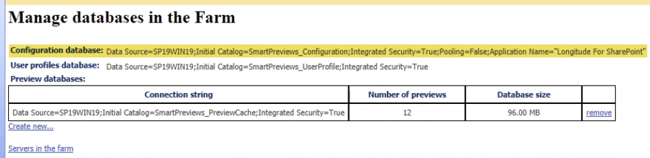 - Under Manage databases in the farm:Record the "Configuration database" string.