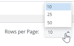 The grid view displays 10, 25, 50 entries per page. By default, 10 entries are shown. You can select a different number of entries to be viewed and Cimpl bookmarks this preference.