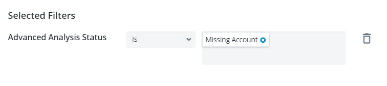 6. Click Apply. Only errors that have the status of Missing Account now appear in the grid.