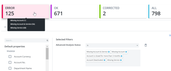 Advanced Analysis flags any errors and depending on the status or error type, you are able perform certain actions to correct or ignore the errors.