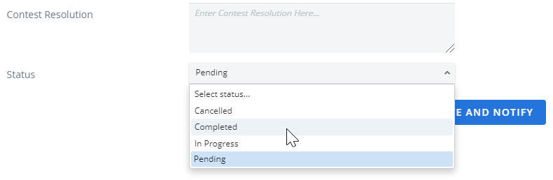 • Save and Notify: this option saves the dispute resolution and sends a notification of the action taken to the person who initially contested their invoice.