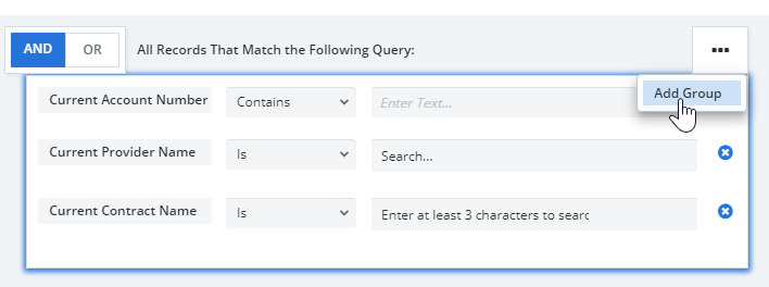 Note: each additional group you add represents a child condition to the first condition you set. Child conditions are denoted by the indented space. Child groups can have their own child groups as well. To remove child condition groups, click on the "..." then click "Remove Group" to remove the child group.