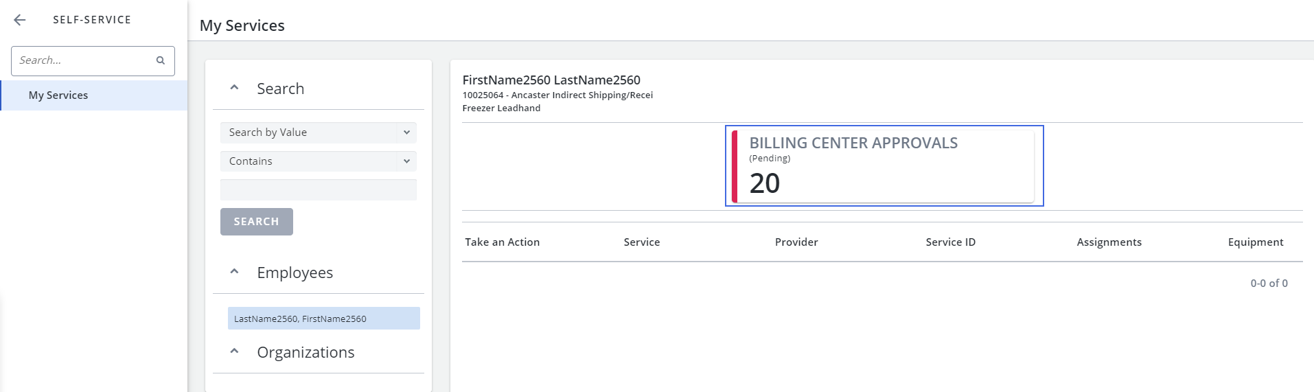 The Billing Center card has been added to My Services for users with Approver permissions and access to Billing Center Requests and Billing Center Configuration.