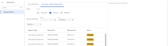 When you click on the card, you will be directed to the Billing Center Requests tab in the Request Center.