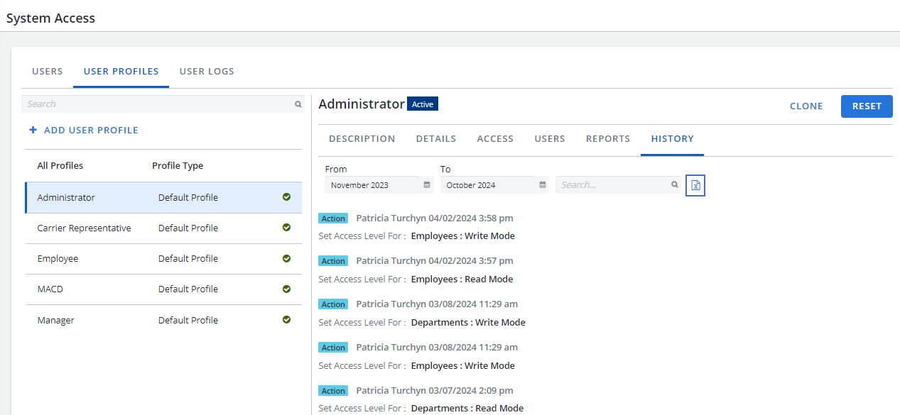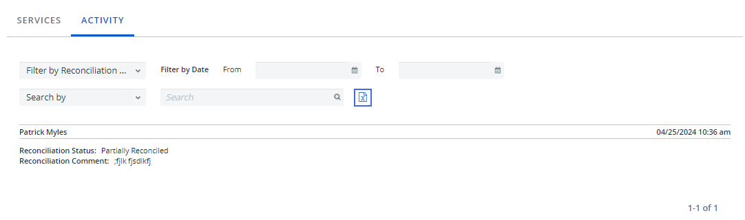 button has been added to the Activity tab, allowing you to export reconciliation tracker activity to an Excel file.