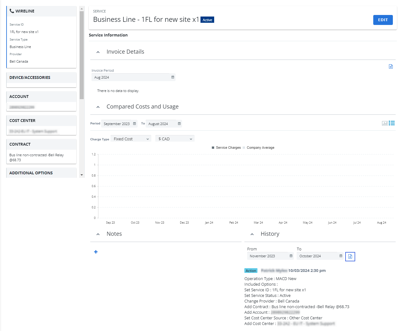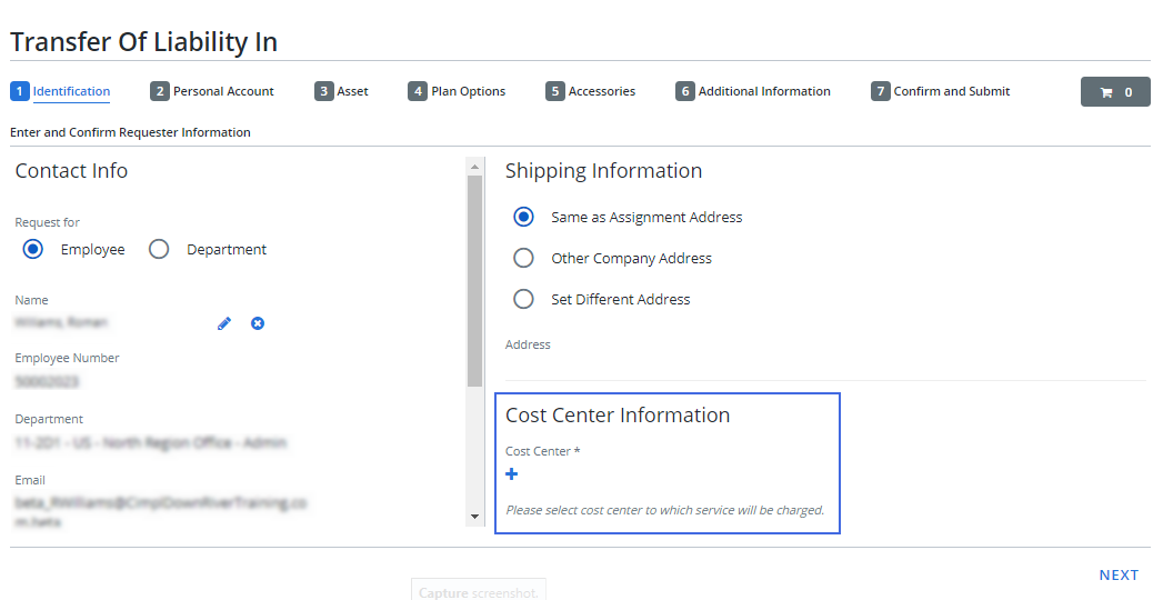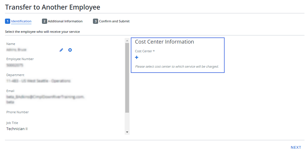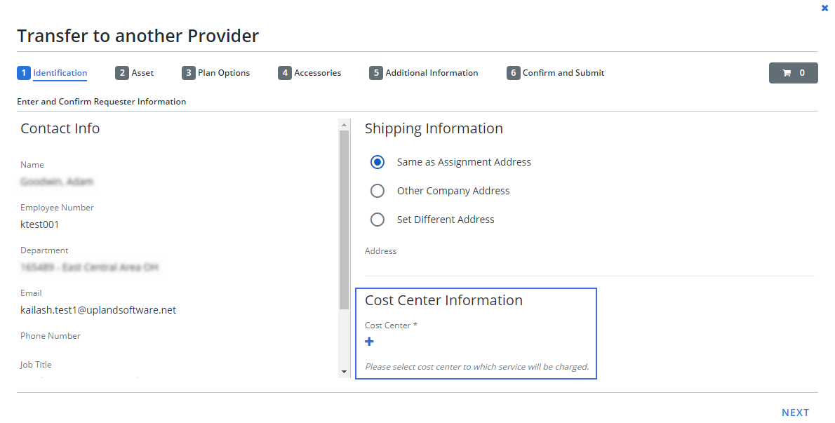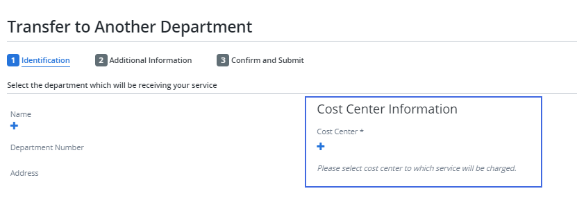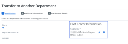 The cost center information section, which allows you to enter cost center details has been added to the following service flows: