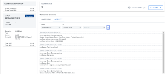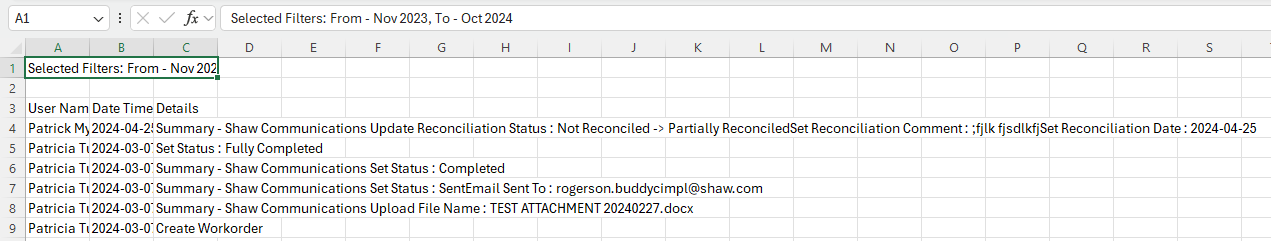 You can now export workorder activity to Excel.
