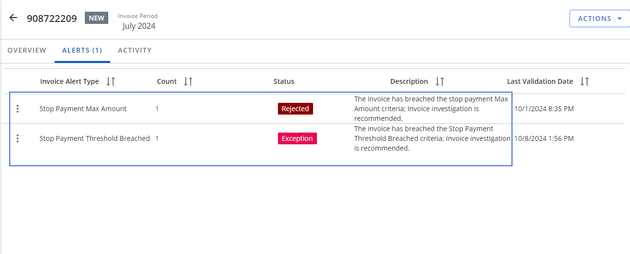 Stop Payment Threshold Breach: The invoice triggered a Threshold Breach Stop Payment.