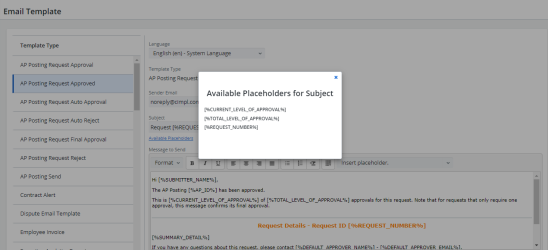 A new Stop Payment Request Cancelled email template has been added, which sends an email to Approvers when a Stop Payment Approval Request is canceled.
