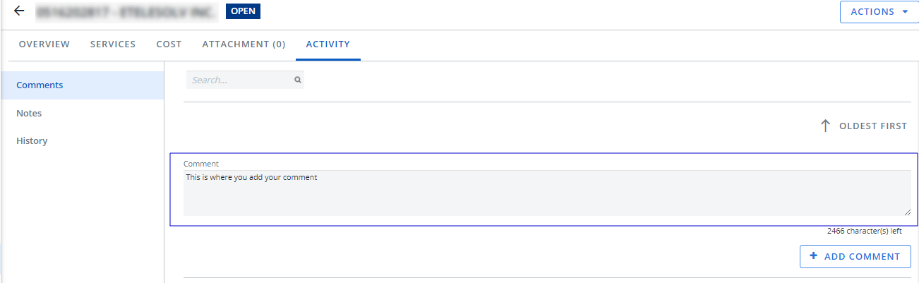 and click Add Comment. The Add Comment dialog box displays. Type your comment and click Save.