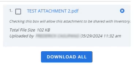 Note: You must select the following checkbox to save the attachment from the workorder to the inventory.