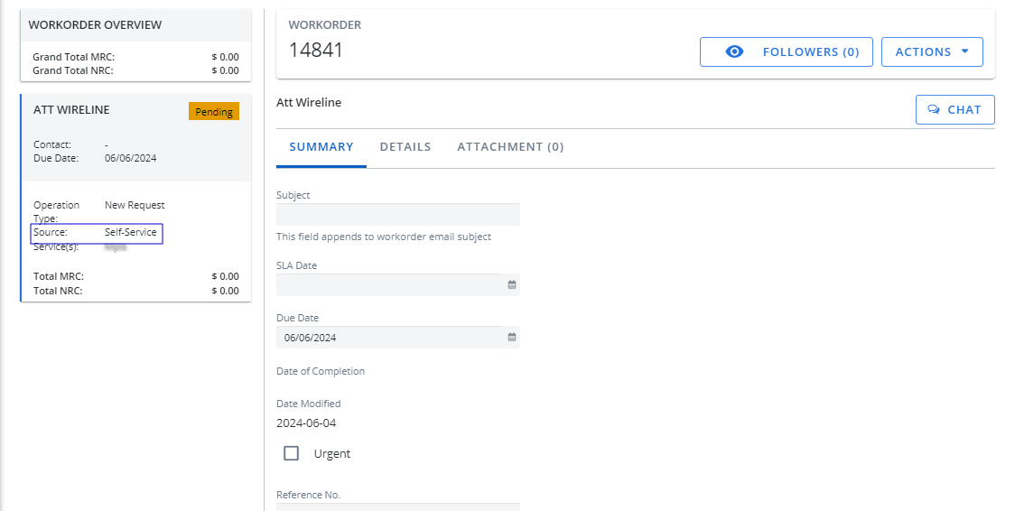 The Source of the workorder has been added to the Workorder Overview. It displays where the workorder was placed: Self Service, MACD, API or Quotation.
