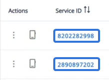 Similar to the legacy page, users can select the "Service ID" of any inventory item on the page.