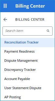 Billing Center - The Billing Center, previously found under Inventory Center, is now a part of the main menu level. A few modules were moved to the category: User Statement Dispute, Account Payable, Payment Readiness, Dispute Management, and AP Posting. For more, see Billing Center.