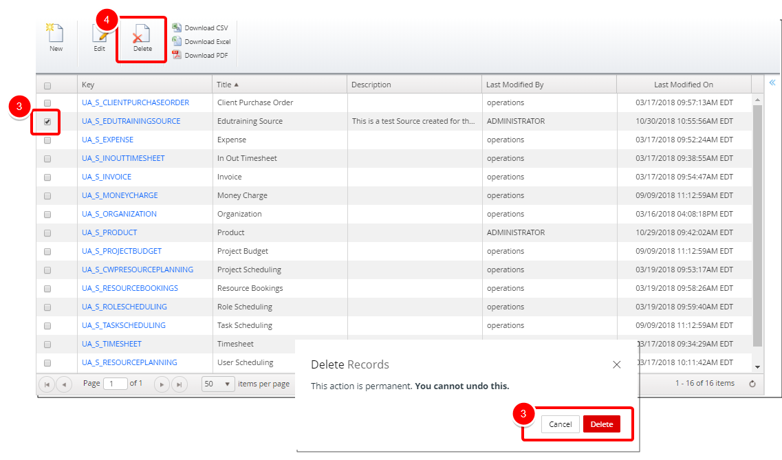 Note: Deleting a data source is a permanent action, and you cannot undo once the action is completed.