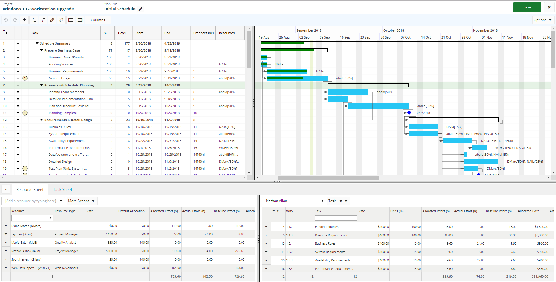 - Users can now interact directly with the gantt area to adjust task durations, adjust task scheduling constraints, and manage predecessor relationships