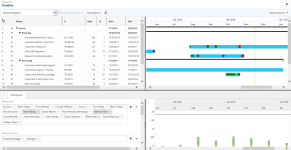 The Timeline allows customers to see a list of projects with a simple Gantt representation of each project, along with a synchronized effort histogram.