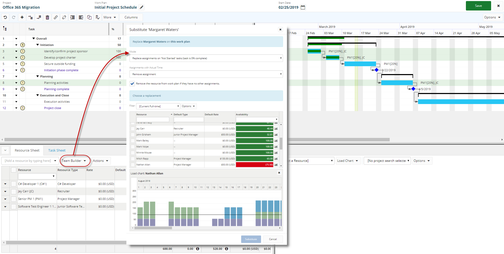 Users can intelligently build out the resourcing requirements for project schedules with the additional insight of the Team Builder.