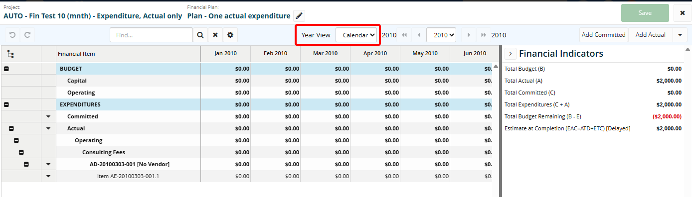 Users were unable to edit the Financial Plan under Project > Financial Plan > Edit. An error occurred when attempting to open or modify the Plan if the Year View selection was set to Calendar Year instead of Fiscal Year.