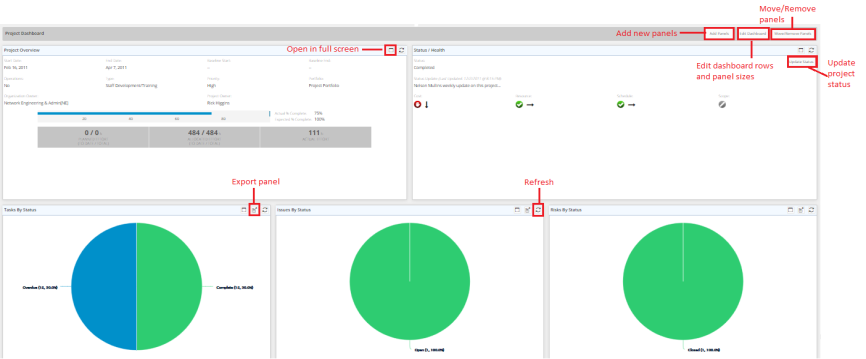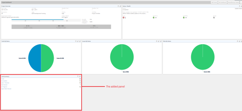 - At the upper-right corner of the Project Dashboard page, click Add Panels.