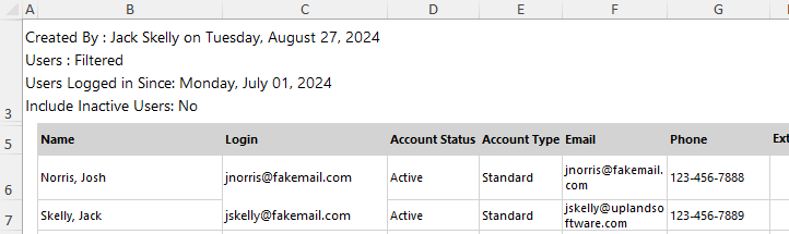 Format: Determine whether to export your User Login report as a PDF file or a Microsoft Excel file.