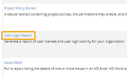 The User Login report provides data about specific users, as well as the last time each one logged into Eclipse PPM. Users can choose to export the User Login report as a PDF file or a Microsoft Excel spreadsheet.