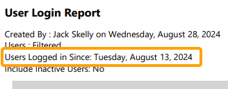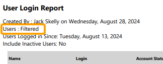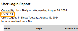 Note: If the "Include All Users" checkbox has been selected, the "Users" field will be set to "All" under the report title.
