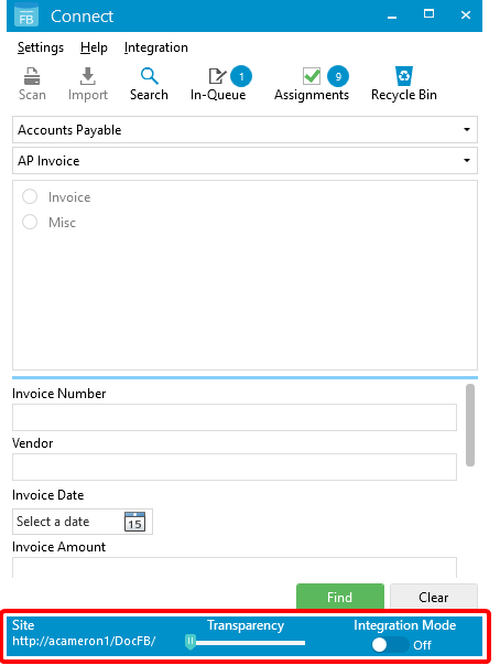 Site: Click the URL to open the FileBound site you are connected to.