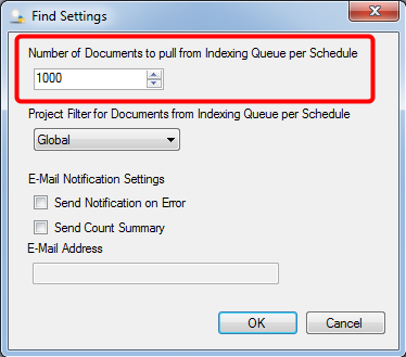 - You can specify a number using Number of Documents to pull from Indexing Queue per Schedule box.