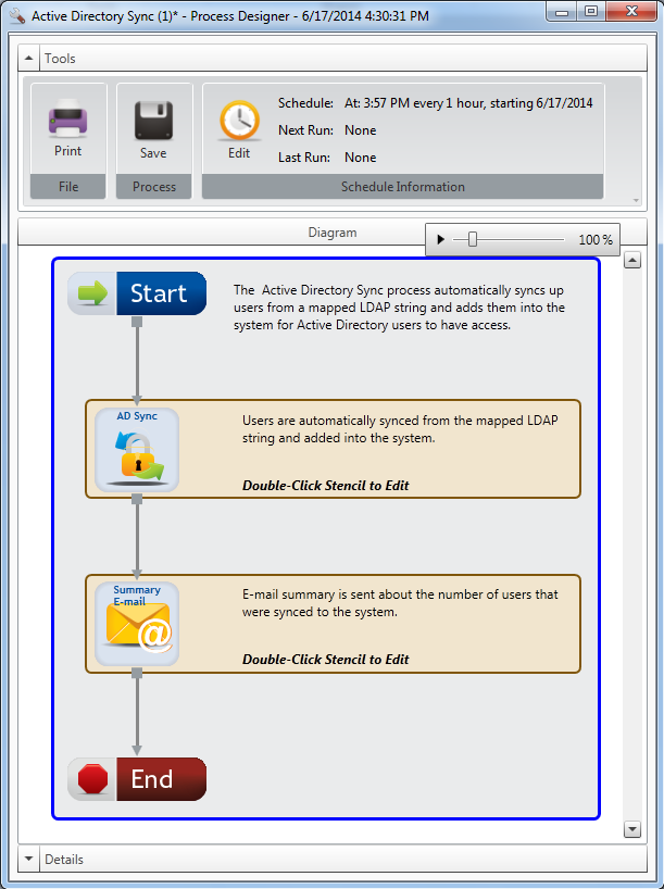 - Configure the AD Sync stencil in the Process Designer. See AD Sync stencil for more information.