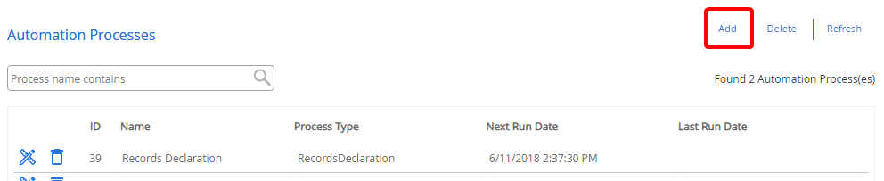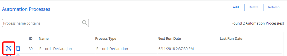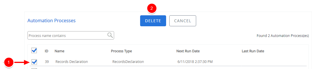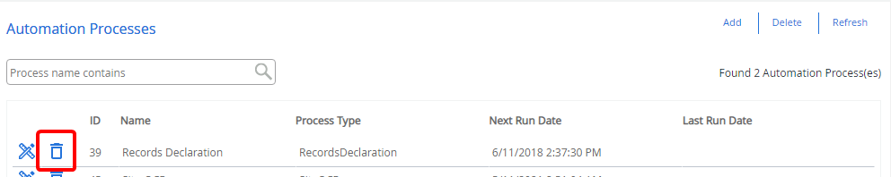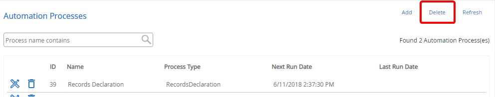 Select the check box next to the automation process(es) you want to delete, then click Delete.