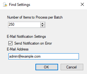 - Select the Send Notification on Error check box, to send an email when an error is encountered.