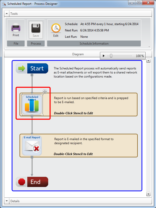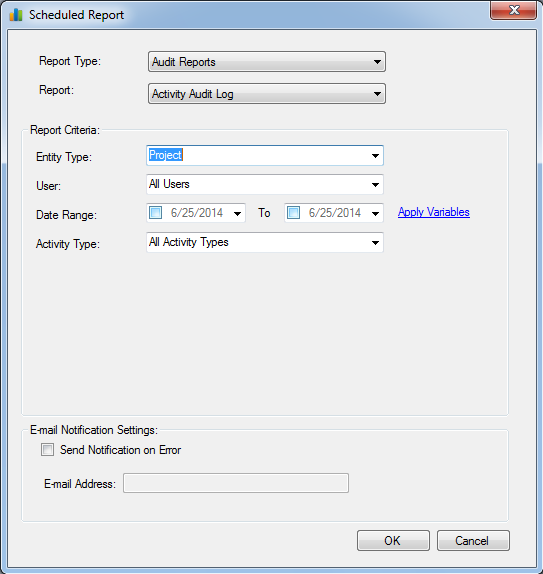The options in the Report list and the Report Criteria section vary based on the type of report selected.Report: The name of the report you want to schedule.