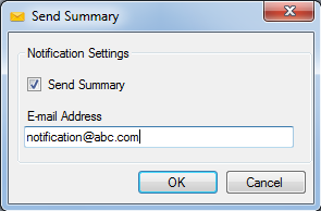 - Select the Send Summary check box to include summary information within the notification email.