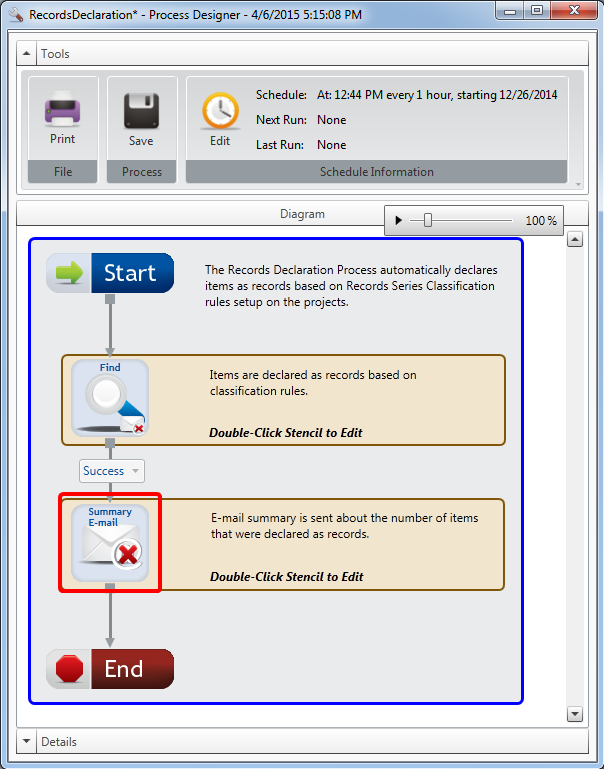 Double-click the Summary E-mail stencil within the Process Designer.