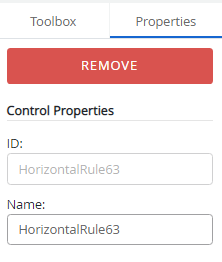 ID: The horizontal rule control ID. The ID is automatically assigned when a horizontal rule control is added to a form. The value of this field cannot be edited.