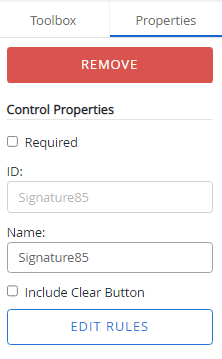 Once a signature control has been added to a form, you can configure it using the options on the Properties tab.